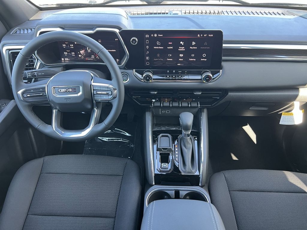 This GMC Canyon's Lane Departure Warning helps keep you in your lane. Lane Keep Assist in the GMC Canyon helps maintain safe driving by gently steering to stay within the lane. Protect the GMC Canyon from unwanted accidents with a cutting edge backup camera system. This vehicle offers Android Auto for seamless smartphone integration. Bluetooth technology is built into this vehicle, keeping your hands on the steering wheel and your focus on the road. The state of the art park assist system will guide you easily into any spot. The installed navigation system will keep you on the right path. The GMC Canyon offers Apple CarPlay for seamless connectivity. This small pickup has an elegant black exterior finish. This vehicle has a 4 Cyl, 2.7L high output engine. This 2025 GMC Canyon is outfitted with an OnStar communication system. A trailer braking system is already installed on this model. This GMC Canyon is rear wheel drive.
