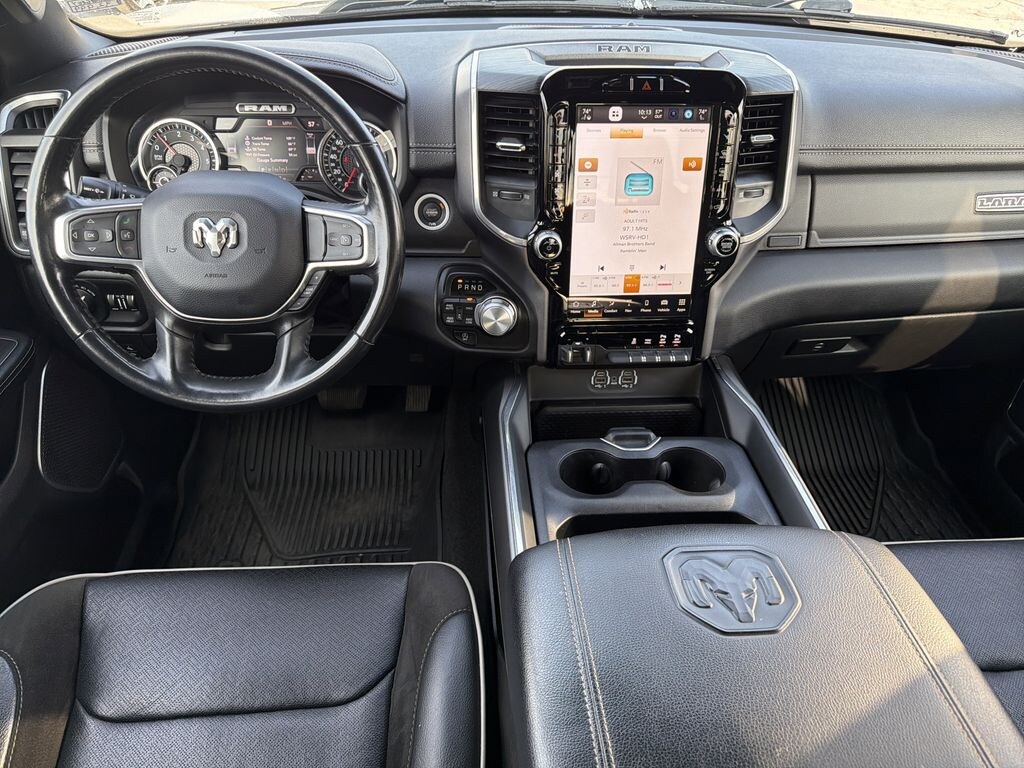 Laramie Level 1 Equipment Group: Google Android Auto; SiriusXM Radio Service; USB Host Flip; Rear Window Defroster; Blind Spot and Cross Path Detection; Rain Sensitive Windshield Wipers; Integrated Center Stack Radio; ParkSense Front/rear Park Assist with Stop; For Details. Visit DriveUconnect.com; For More Info. Call 800-643-2112; Rear Power Sliding Window; Integrated Voice Command with Bluetooth; Connectivity - US/Canada; 12" Touchscreen Display; GPS Navigation; 4G LTE Wi-Fi Hot Spot; GPS Antenna Input; SiriusXM with 360L; Global Telematics Box Module; Connected Travel and Traffic Services; Front LED Fog Lamps; LED Reflector Headlamps; Foam Bottle Insert (door Trim Panel); Apple CarPlay; Disassociated Touchscreen Display; HD Radio; Uconnect 5 Navigation with 12.0" Display Radio; Remote Tailgate Release; Auto High Beam Headlamp Control; Electric Shift on Demand Transfer Case; Front Door Accent Lighting; 2nd Row in Floor Storage Bins; Rear Door Accent Lighting. Quick Order Package 27H Laramie. Sport Appearance Package. Leather Trimmed Bucket Seats. Anti-Spin Differential Rear Axle